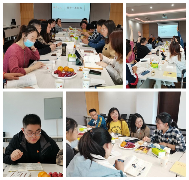 推荐一本好书。活动首先由5名领学同志进行读书分享,分别分享了《习近平的七年知青岁月》、《觉醒年代》、《平凡的世界》、《论共产党员的修养》、《摆脱贫困》中的精彩片段,从自身阅读体会出发,分享阅读心得。随后以小组为单位进行分享,在小组分享会上,大家节选了曾经阅读过的经典书籍和重要讲话的精彩段落进行分享,畅谈读书所得,并结合实际做深入思考,交流学习新词、新事、新观点、新知识。此环节中大家讨论热烈、交流深入,开阔了彼此思路与眼界,达到了交流互动、共同提高的目的。
