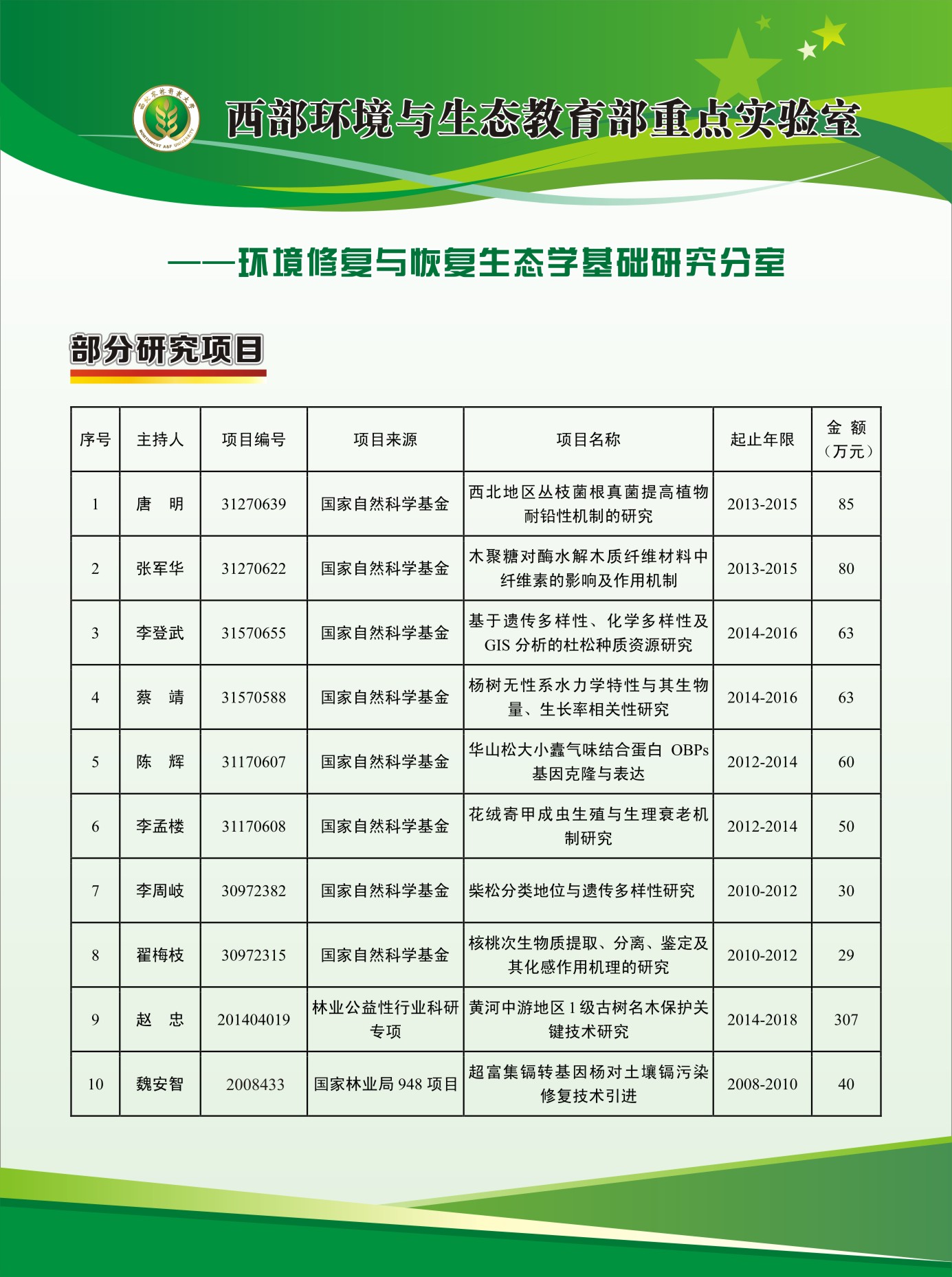 ③ 水土资源保护与高效利用技术:以流域为研究单元的土地资源合理利用格局,流域生态系统生产力稳定性机制及调控,流域生态经济系统管理效益分析与评价,水土保持生物、工程措施新技术及新方法探索。